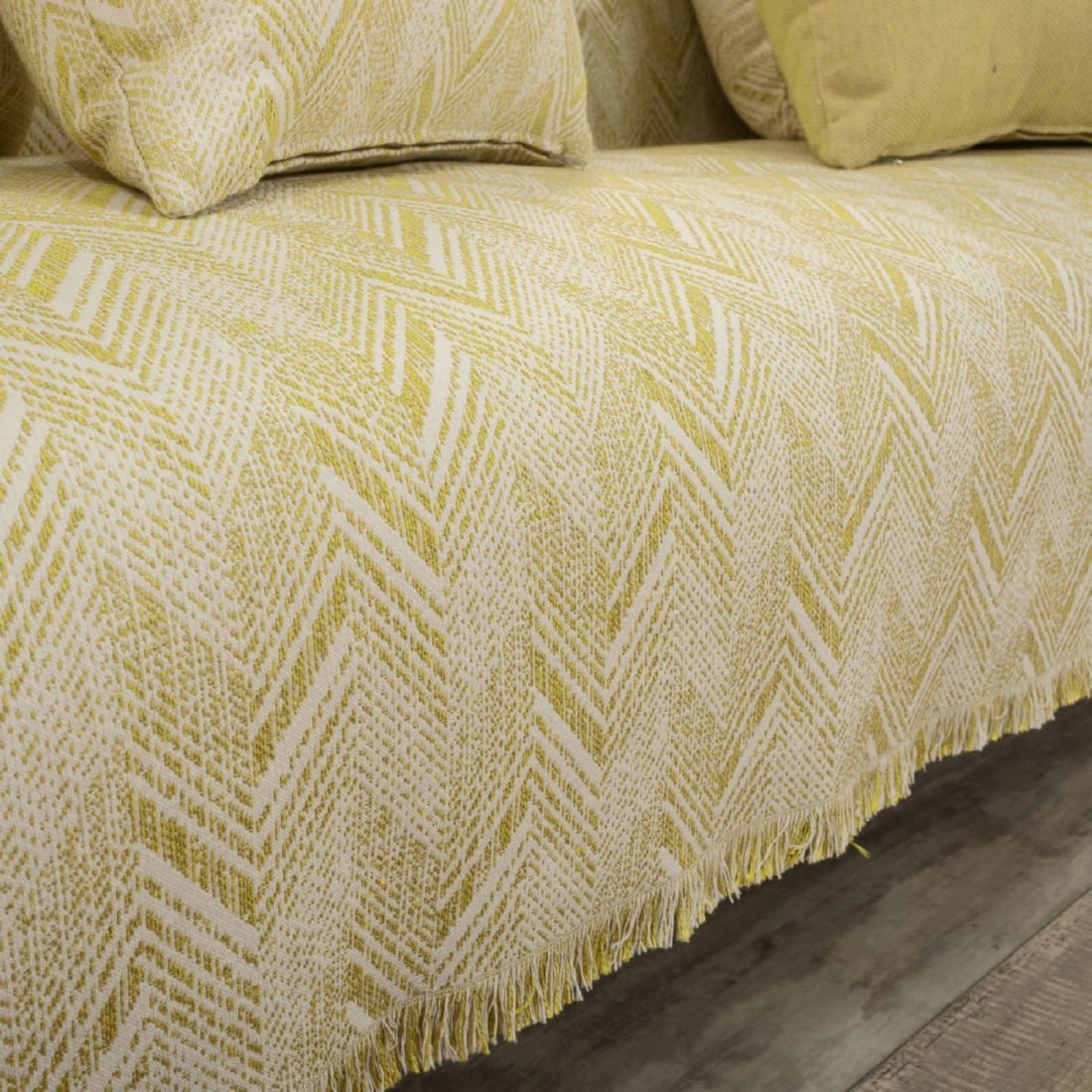 The fabric composition of the throws consists of 75% cotton yarns and 25% polyester yarns.
