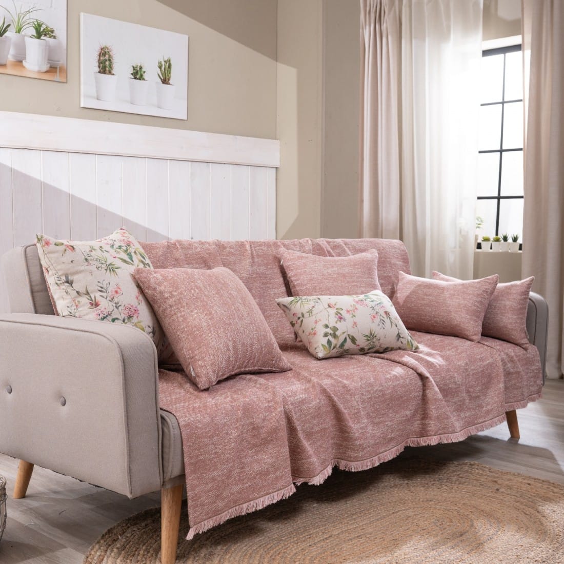 Ανανεώστε τον χώρο σας με τα βαμβακερά καλοκαιρινά ριχτάρια της εταιρίας Teoran. Φανταστικές παστέλ αποχρώσεις, εξαιρετικής ποιότητας, υπέροχοι συνδυασμοί χρωμάτων, με λαμπρά και ανεξίτηλα  χρώματα. Πλένεται  στους 30 βαθμούς και στεγνώνεται σε χαμηλές στροφές.